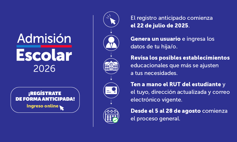 Ya puedes realizar tu registro anticipado en Admisión Escolar 2026. Crea tu usuario e ingresa la información de tu postulante.